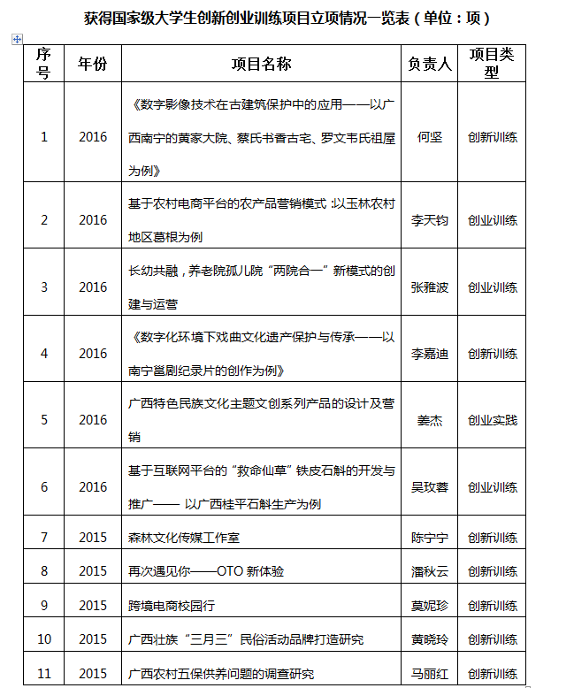 2015-2016年,共获得老员工创新创业训练项目立项69项,其中,国家级立项11项、自治区级立项18项,校级40项。