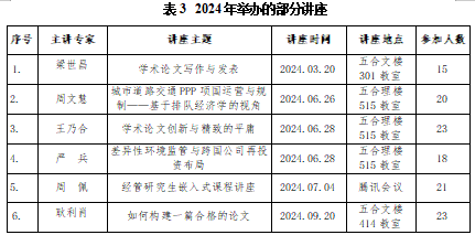 科研团队与企业、高校等实际应用领域保持良好的合作关系,教师积极开展产学研合作,深入了解实际问题和需求,将研究成果应用到实践中,地方社会经济发展提供了智力支撑。2024年MIB专业导师共承担国家级、省部级科研项目和横向项目分别为:国家级课题2项,省部级课题11项,专著2部,研究报告1项,科研经费达72万元。本年度MIB专业老师先后发表的论文有17篇。公司主办的学术论坛邀请了国内相关领域的专家、学者开展专题报告,公司教师及全体硕士研究参加了学术论坛。本年度主办了7场学术讲座、研讨会、培训班,邀请了梁世昌、周文慧、王乃合、严兵等一批知名学者开展学术讲座。(见表3)。全力支持本学科教师参加区内外学术会议,所有教师都参加了全国性或区域性不同层次的学术会议和研修班培训。成功举办“民族地区公共治理高质量发展”学术研讨会。