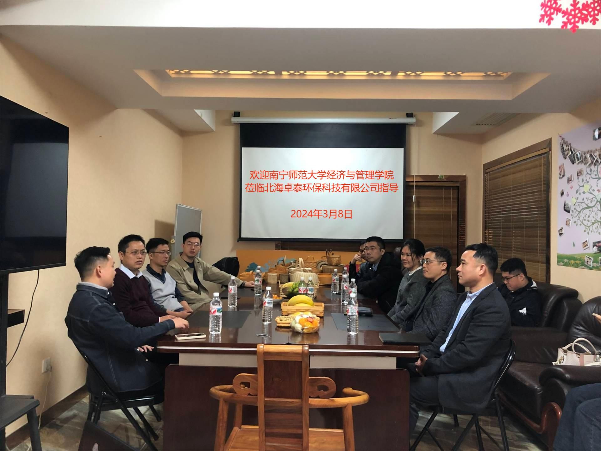 在广西物流集团,公司师生一行参观了广西现代物流集团有限公司规划展示馆,了解了集团概况、发展历程、主营业务、人才需求情况。双方还在广西物流集团广西桂物金岸制冷空调技术有限公司召开了座谈会,公司党总支副书记、职工董事、工会主席江孙裕对公司师生一行表示了热烈欢迎,公司领导对员工一直以来的关心和支持表达了感谢,双方就强化校企合作、深化协同育人、帮扶员工实习就业等方面开展了深入讨论。在北海卓泰环保科技有限责任公司,公司负责人黄卓辉员工深情回顾了在校期间学习时光和工作成长经历,对母校老师的培养和关心表达了感谢,并结合个人成长经历,对如何帮助老员工树立正确的就业观,帮助毕业生顺利、优质就业创业等提出许多建议意见,并表达了继续深化与母校合作的深切愿望。宏明科技集团有限公司广西运营中心主任覃甲淳员工对母校领导、老师的到来表示诚挚的欢迎,并就建设和完善员工联络处做了详细介绍,表示将充分发挥联络处作用,努力为提高公司人才培养质量、促进毕业生高质量就业上做好服务。