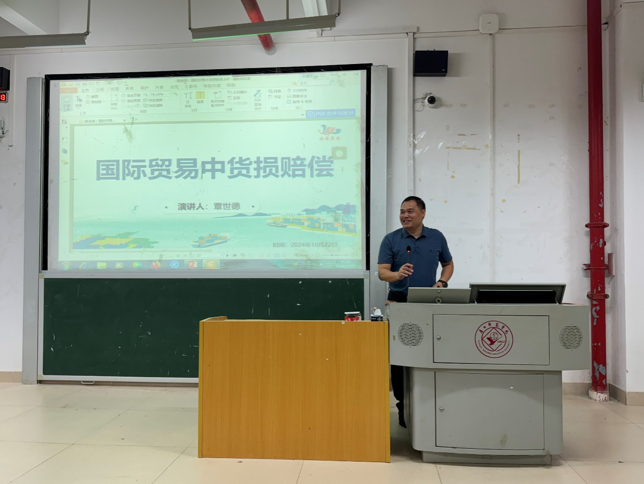 2024年10月22日下午,william威廉亚洲在五合校区文综301顺利举办了“国际贸易中的货损赔偿”专题讲座。本次讲座旨在帮助员工深入了解国际贸易中货损赔偿的原因和索赔流程,提升其在全球经济环境下的风险管理能力。讲座由钦州开投泓泰供应链公司总经理覃世德主讲,由经管院副经理何玲玲主持。