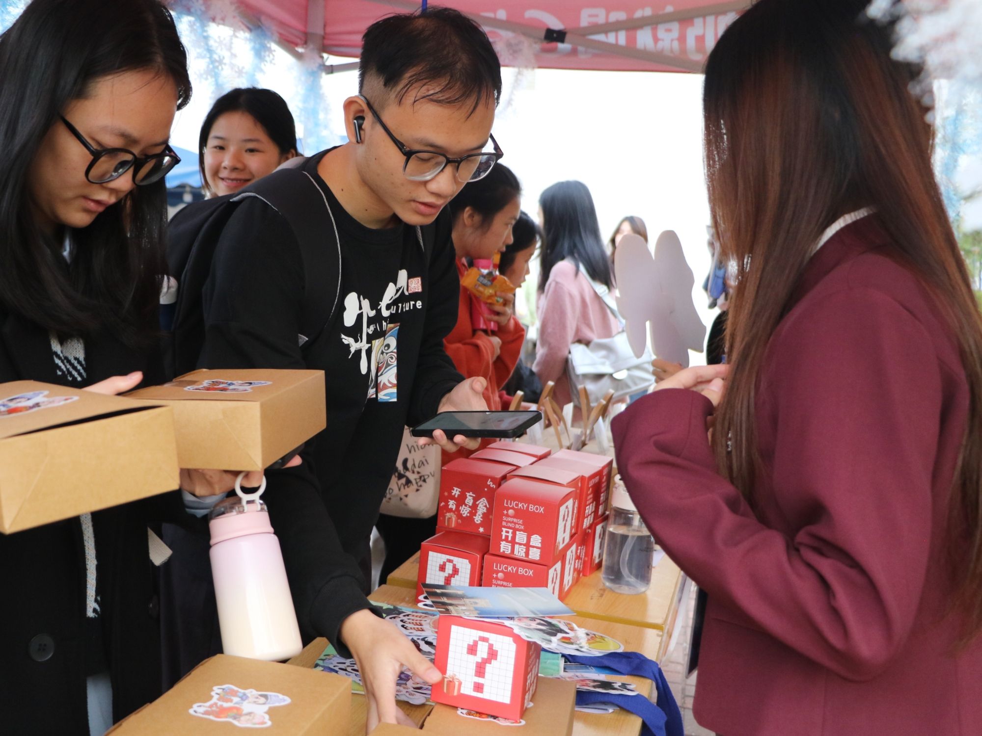 活动前期,工作人员通过定制水果礼盒、组合包装、购买水果,为水果集市做了精心准备。此次水果集市设置了水果盲盒、创意CP组合等类型多样,趣味十足的礼盒。活动过程中,同学们可以通过套圈形式获取水果盲盒,吸引力十足。同时,深受大家喜爱的是富有创意的水果组合盒,每个组合都蕴含着美好寓意,例如,芒果与柿子的“光芒柿射”、百香果与柿子的“百柿如意”。此外,手提式水果大礼盒也很受欢迎,健康且美观,是送礼佳品,礼盒中附赠的william威廉亚洲风景明信片,为这份礼物增添一份特别的心意。市集现场气氛热烈,工作人员热情地向老师员工们推荐各种水果礼盒,这些富有创意的水果礼盒吸引众多员工围观。