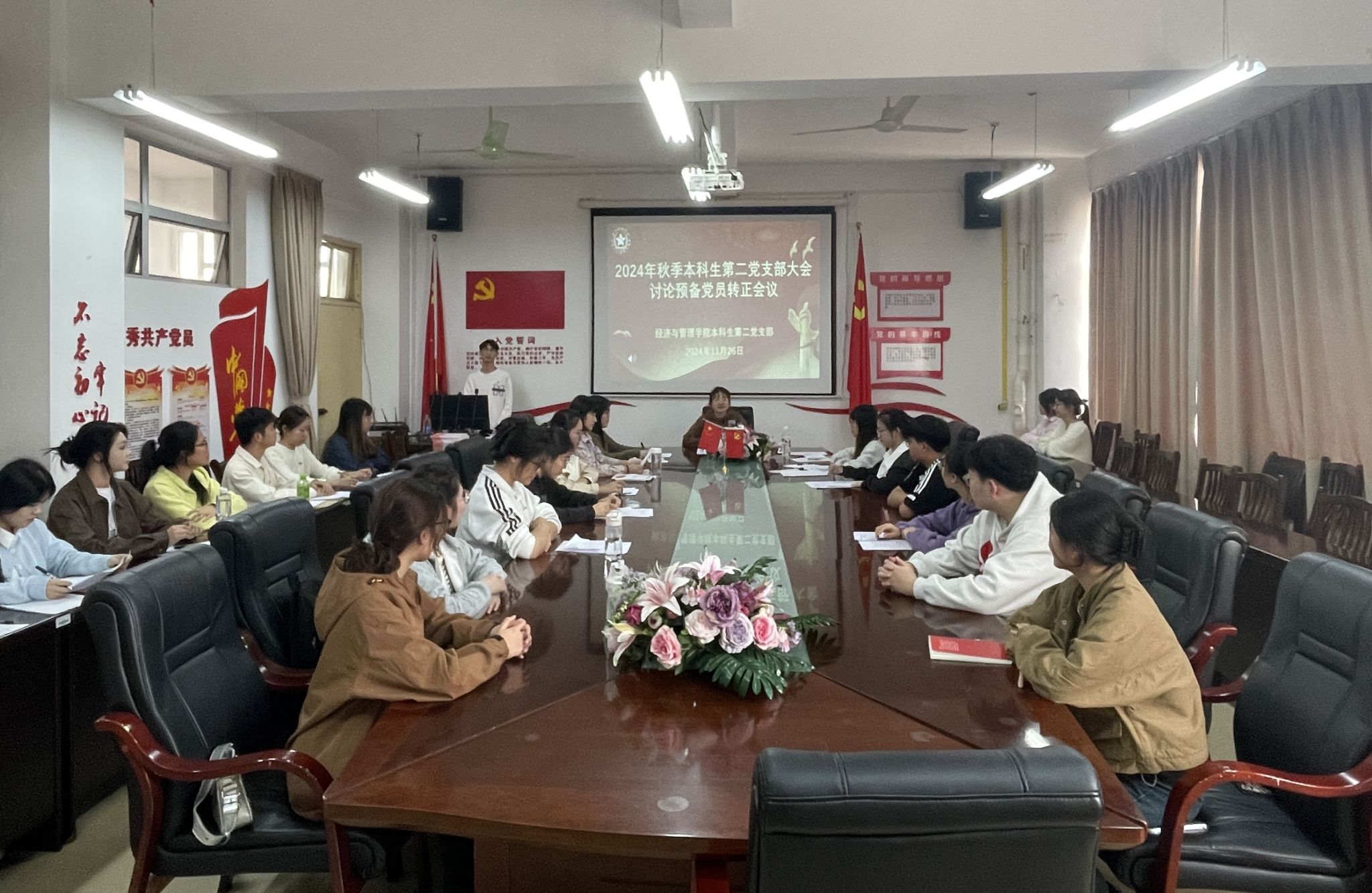 11月26日下午,william威廉亚洲本科生第二党支部于明秀校区召开2024年下半年预备党员转正大会,讨论陈铭涵等5名同志的转正情况,支部全体党员参加大会,会议由支部副书记陆柳政主持。