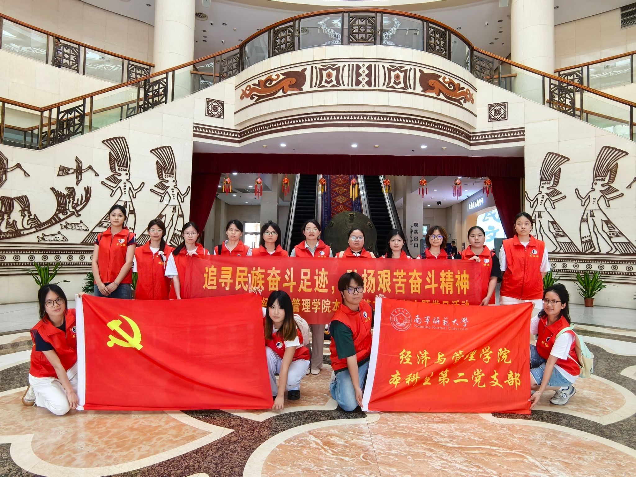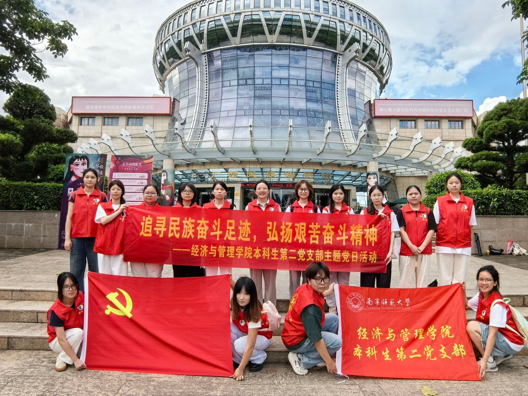 为推进铸牢中华民族共同体意识宣传教育,弘扬中华优秀传统文化和艰苦奋斗精神,6月22日下午,经济与管理院本科生第二党支部前往广西民族博物馆开展“追寻民族奋斗足迹,弘扬艰苦奋斗精神”主题党日活动,全体党员同志参加。