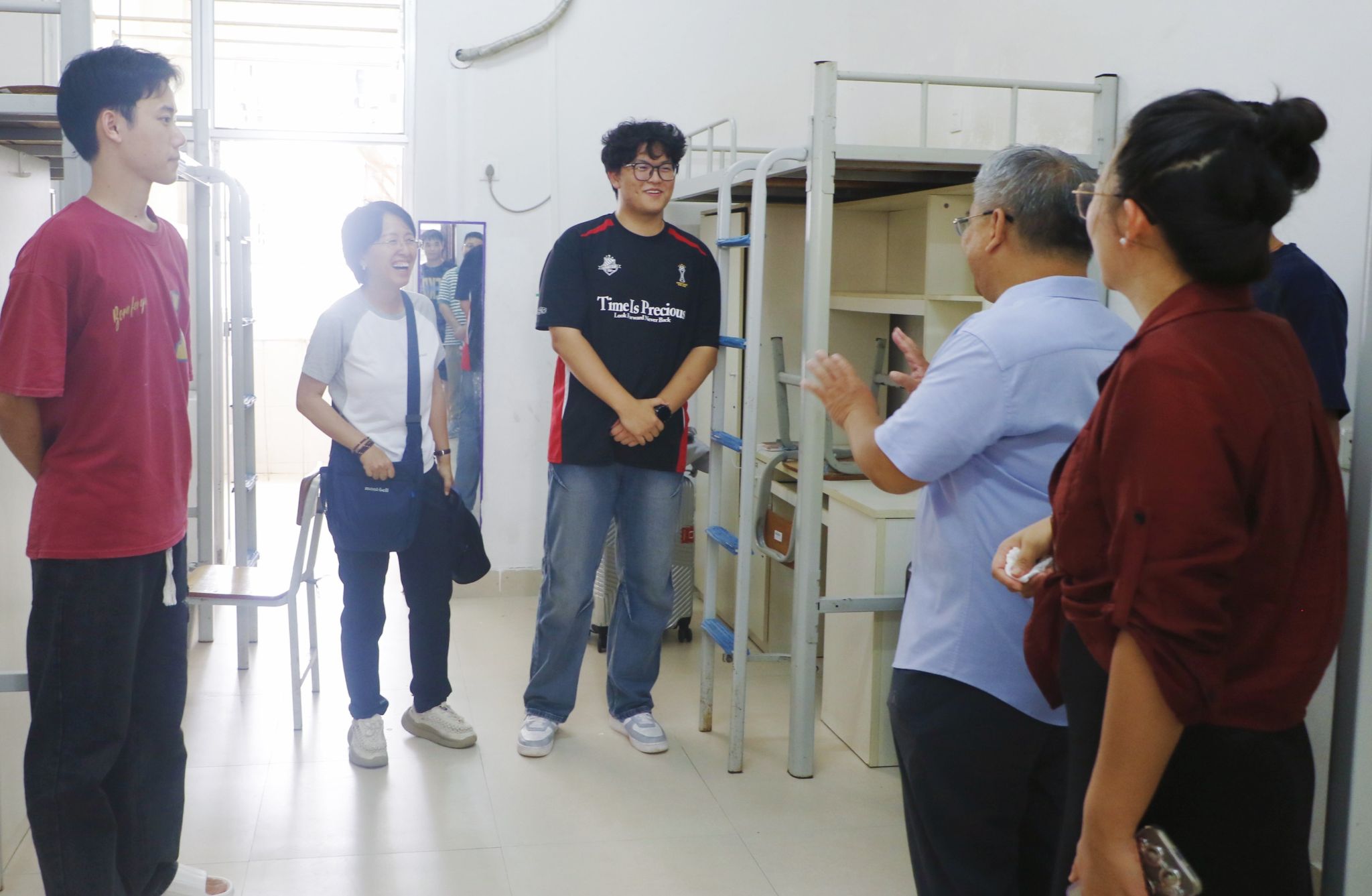 新生报到期间,公司党委书记韦海鸣、经理何玲玲、党委副书记谢统义、副经理丘兆逸,全体辅导员以及班主任来到公司大本营指导员工干部做好新生接待工作,员工干部从容有序进行双证核验、发放资料等工作。当天下午,公司领导和班主任、辅导员深入新生宿舍,与新同学及家长亲切交流,送上公司的关怀与问候。此外,为解决新生初到公司面临的各种问题,公司开设了新生报到直播答疑通道,全天不间断直播,吸引观众2057人次观看,评论量243,点赞达2.3万,及时有效地解决了新生困惑。晚上,班主任召开新生见面会,重点强调了预防电信诈骗等内容,为新生开学上好第一堂思政课。