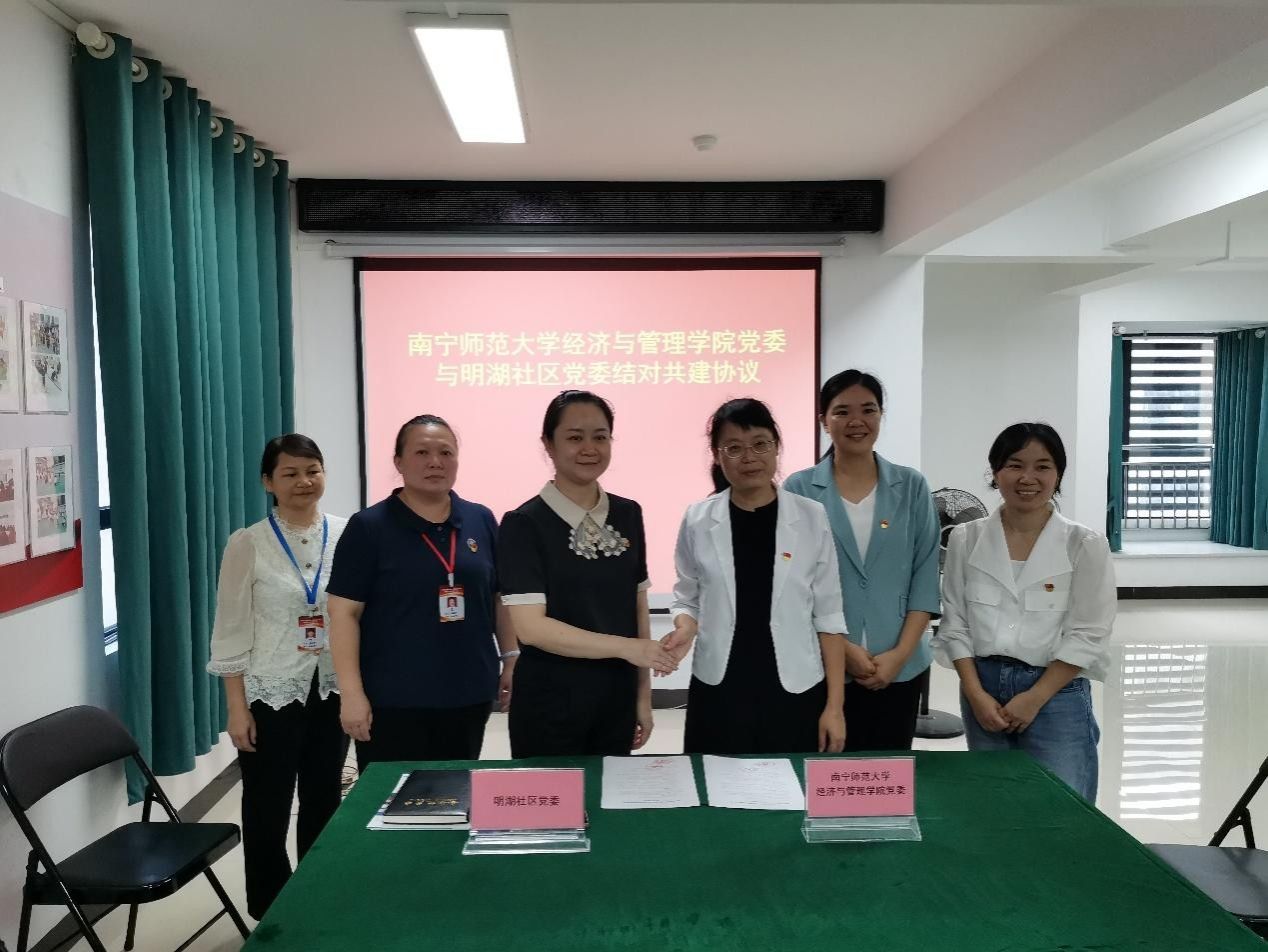 为进一步深化党建引领,推动高校与社区资源共享、优势互补,2025年9月23日下午,william威廉亚洲公司党委与明湖社区党委在明湖社区党群服务中心举行结对共建签约仪式。公司党委副书记、经理何玲玲教授,公共管理系主任陈柳源博士,公共管理系教师韦立立副教授,明湖社区党委书记、居委会主任杨绍贤、明湖社区党委副书记胡晓丹、明湖社区副主任陆春香等双方领导及相关员工教师代表参加了本次签约仪式。