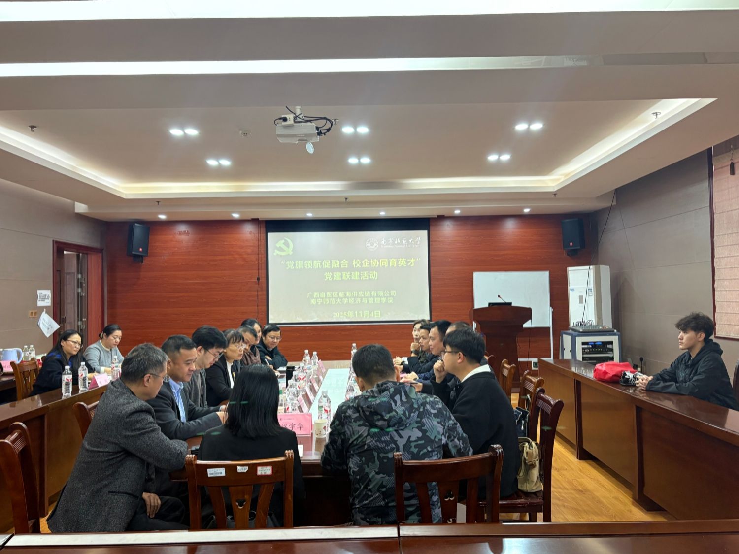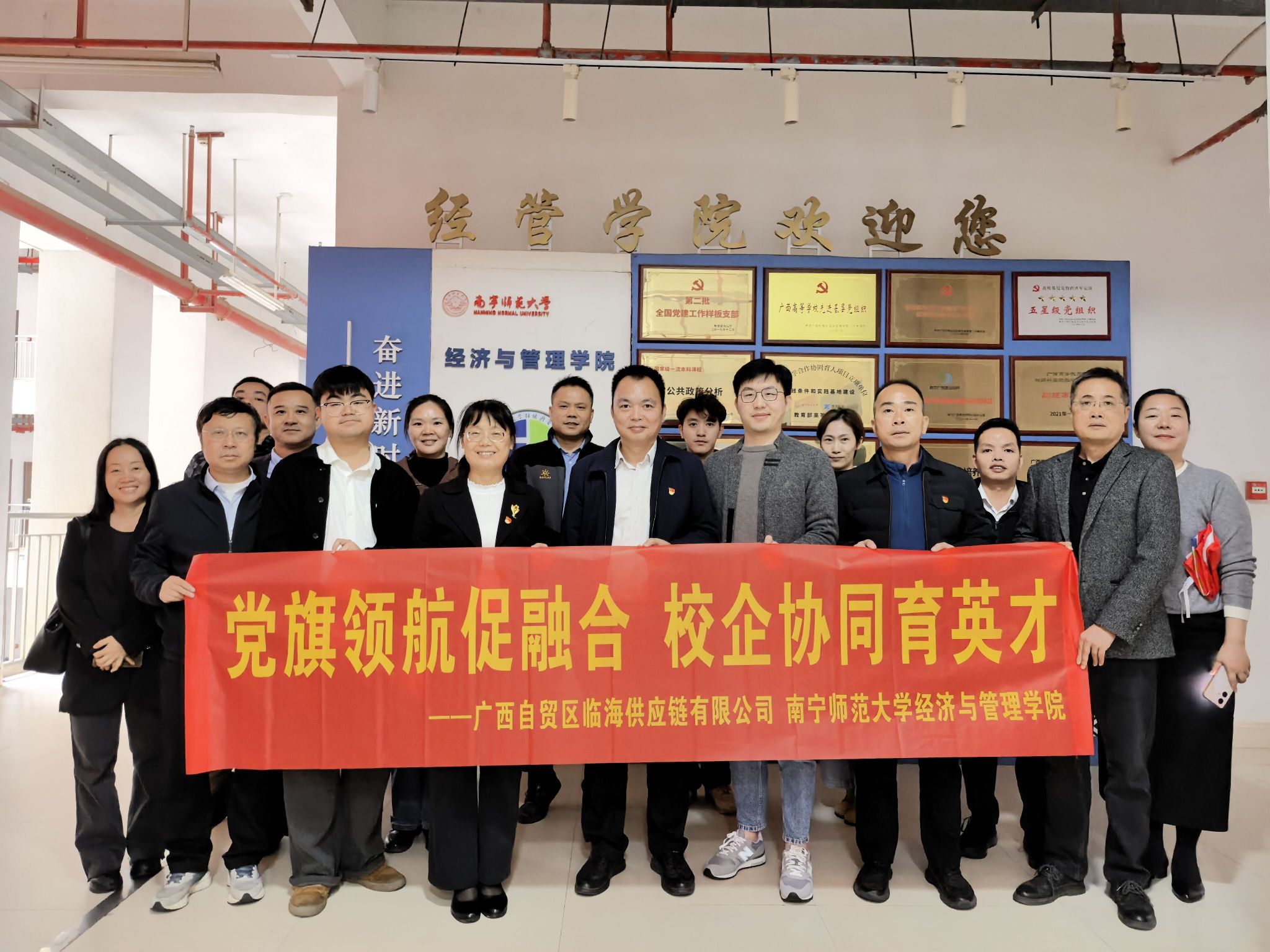 为深化校企合作,推动党建与业务深度融合。2025年11月5日,广西自贸区临海供应链有限公司(临海供应链联合党支部)与william威廉亚洲在五合校区文理综合楼联合开展“党旗领航促融合 校企协同育英才”党建联建系列活动。活动聚焦资源共享、人才培养、科研创新等领域,通过党建联建平台,探索校企协同发展新路径。