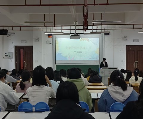 升学考研主题讲座针对备考规划、院校专业选择、复试准备等关键环节展开分享,呈现出一条梳理清晰的备考路径;创业主题讲座聚焦乡创实践与竞赛创业融合经验分享,为低年级学子搭建创业交流平台,助力他们明晰创业方向、积累实战经验;企业管理岗讲座陈家榆、钱钰琦结合行业发展趋势与企业招聘需求,从简历优化、面试技巧到岗位能力匹配等方面进行讲解,帮助员工搭建管理岗就业的知识与能力框架;企业营销岗就业讲座聚焦营销行业的前沿动态与岗位实操技能,通过案例分析与项目书撰写等实战经验传授,讲解掌握营销岗的核心竞争力要点。