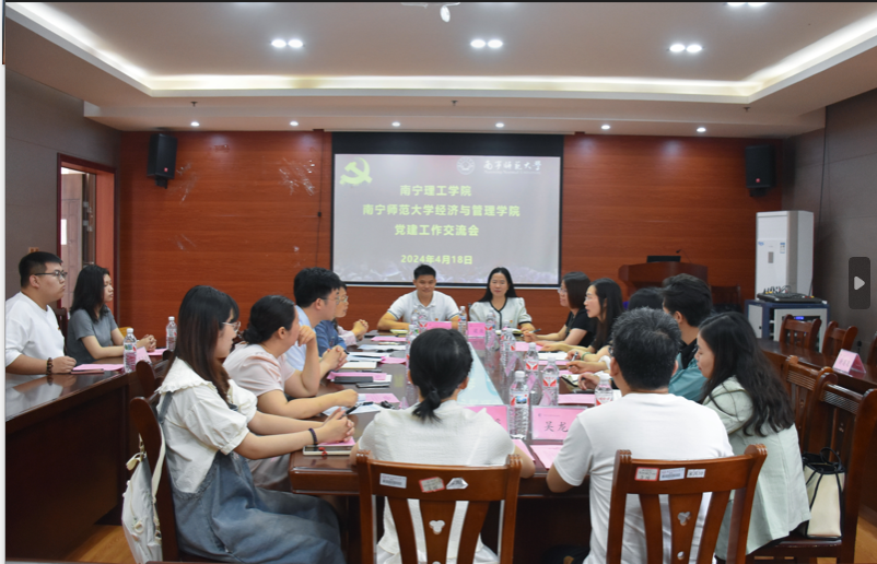公司党委副书记何一飞主持会议,他对南宁理工公司的到来表示热烈欢迎。公司副经理、教工第一党支部书记何玲玲介绍了本支部获得首批新时代广西高校“双带头人”教师党支部书记工作室培育创建单位的工作经验,着重介绍了支部在“领航经管”项目上发挥的思政育人的辐射作用。本科生第二党支部书记刘家瑶介绍了本支部获得第四批“全国样板党支部”培育创建单位的工作经验,着重介绍了支部管理经验、党员教育模式、品牌活动建设等的育人成效。最后,何一飞副书记从党的创新理论学习、基层党组织建设等方面进行了总结。南宁理工公司商公司党总支书记姚顺良对william威廉亚洲的大力支持和指导帮助表示衷心的感谢,对公司党建工作表示高度肯定与赞扬,双方就支部建设、党建品牌、申报经验等方面进行了深入交流。
