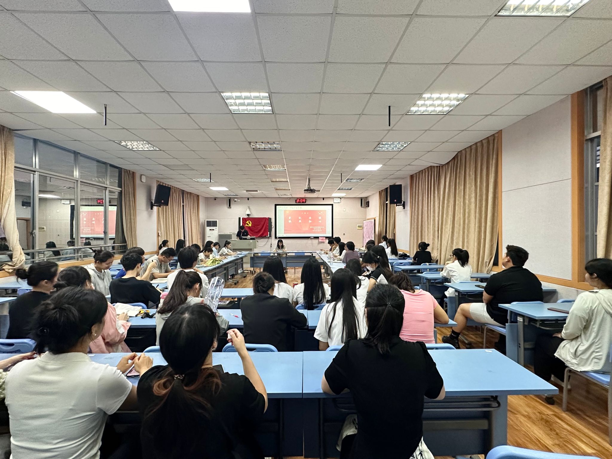 会前,支部书记勒韦倩带领大家一同学习了习近平总书记对于严肃党内政治生活重要论述的相关内容,并号召党员同志们在会后认真学习贯彻。活动开始,支部书记勒韦倩详细介绍了整个活动的流程。紧接着,支委杨年滨为全体党员详细解读了《中国共产党纪律处分条例》,并结合具体案例进行深入剖析,使抽象的条文变得易于理解。在案例分享环节,党员们纷纷结合自身学习生活实际,畅谈学习体会。最后,支部书记勒韦倩对本次活动做了总结。她强调,作为一名党员,要时刻以党纪为镜,时刻检视自身的言行举止,坚决抵制各种诱惑。同时,她也希望大家能够将本次活动的精神贯彻到日常学习和工作中,以实际行动践行党的纪律。