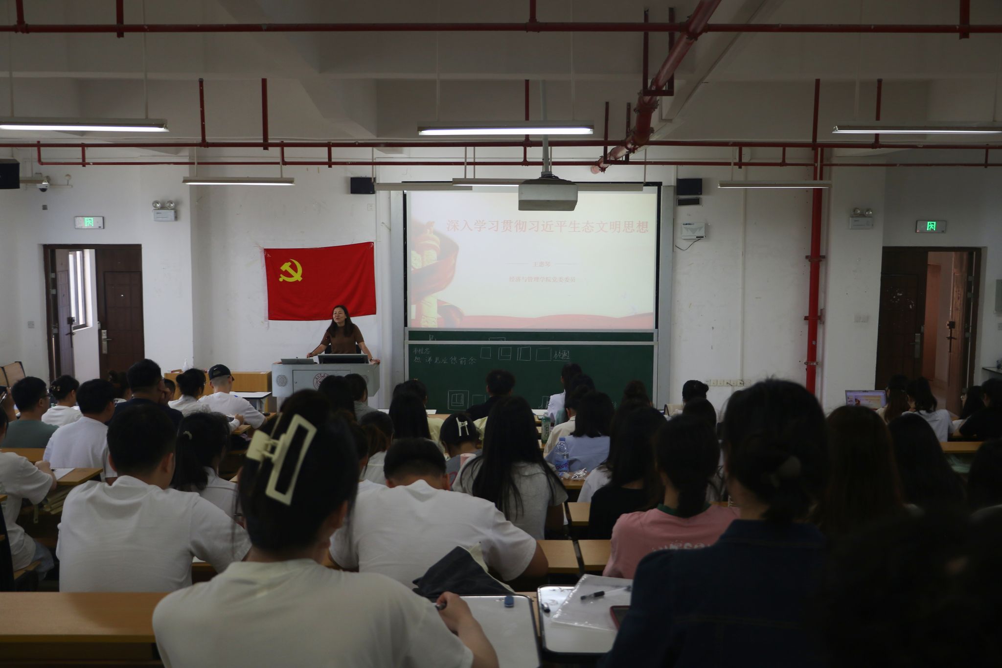 第三讲由王惠琴教授紧密围绕深入学习贯彻习近平生态文明思想主题,从深入把握习近平生态文明思想的丰富内涵、基本内容及重大意义、对新时代的实践要求三个方面进行了解,讲述了生态文明建设是关乎中华民族永续发展的根本大计,提出为什么建设生态文明、建设什么样的生态文明、怎么建设生态文明这一主题线,帮助党员更好地把握习近平生态文明思想的核心要义。她指出习近平生态文明思想基本内容的“十个坚持”及意义,要求在新时代的进程中,基于历史,着眼于未来,勇于实践,坚持在习近平生态文明思想中建设美丽中国。