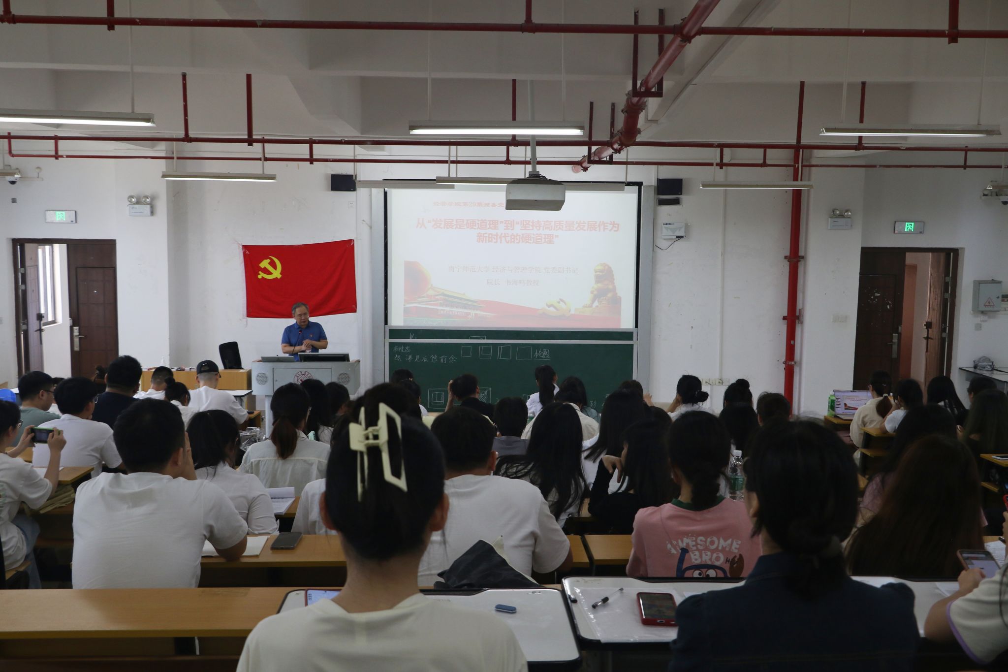 第二讲由韦海鸣经理紧密围绕“坚持高质量发展作为新时代的硬道理”的主题,重点从“发展是硬道理”的提出、高质量发展的提出、“新时代硬道理”的论断、区域的高质量发展、当代老员工的高质量发展五个方面进行深入讲解,使预备党员明白坚持发展是硬道理的战略思想不能动摇,紧跟新时代中国高质量发展的脚步,贯彻落实习近平总书记对广西“五个更大”重要的要求,把人生理想融入国家和民族的事业中,将个人奋斗融入新时代高发展格局。