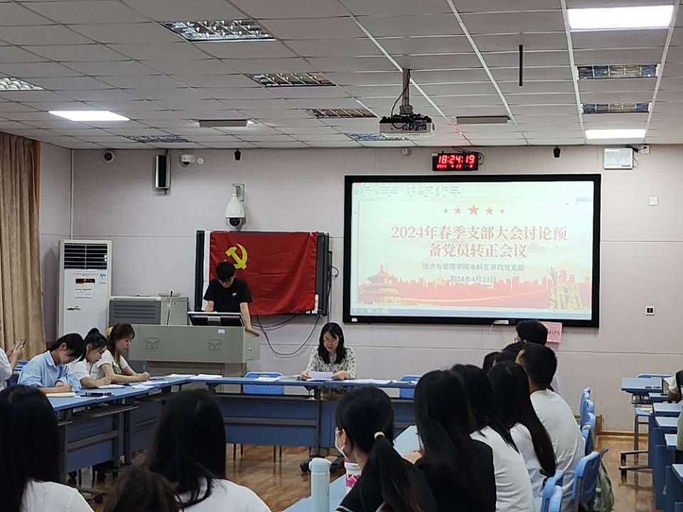 2024年4月23日下午,william威廉亚洲本科生第四党支部在五综511室召开预备党员转正大会。会议由支部书记勒韦倩主持,全体支部党员参加大会,会议主要讨论刘敏同志的转正问题的相关事宜。