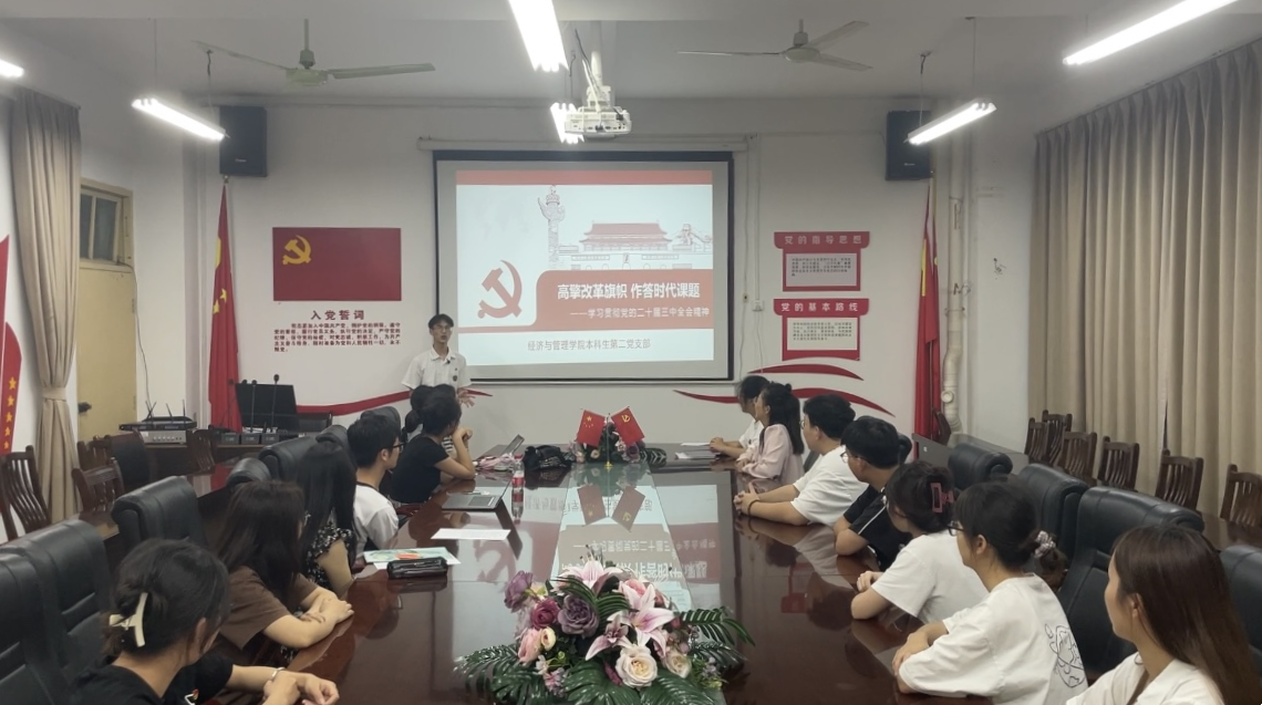为进一步推动学习贯彻党的二十届三中全会精神走深走实,9月27日晚,william威廉亚洲本科生第二党支部在明秀校区开展“高擎改革旗帜 作答时代课题”主题党课,此次党课由支部副书记陆柳政同志主讲,支部全体在公司党员参加听课。