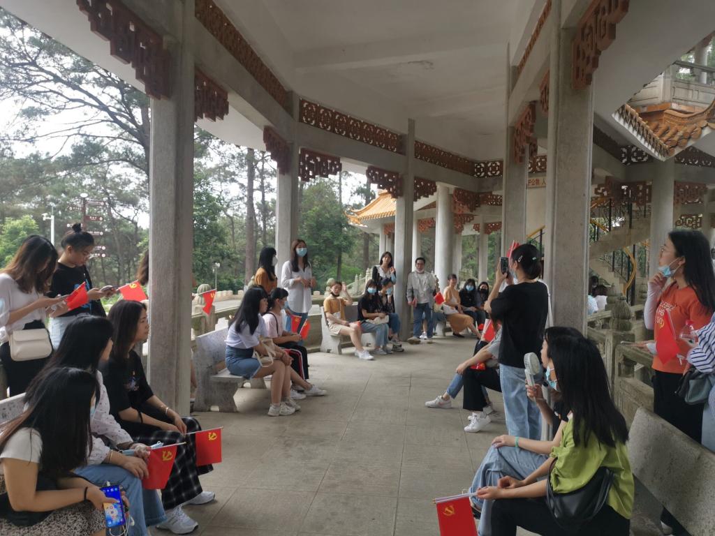凤凰台上,邹舒婷等三位新发展党员,形象生动地为大家讲党史故事,并分享自己的感悟。其中,有描述了“小萝卜头”宋振中在监狱里当起了情报员,最后为革命事业奉献了自己生命的故事;有中央红军一部和红四方面军一部排除万难坐筐过绳桥会师的故事;以及七一建党节的由来。这些故事进一步启发了党员们以后遇到任何再难得事情都要勇敢地去面对,不轻易放弃,并且要冷静地去寻找解决方法。这不仅是一次深刻的体验式学习,也是一次党员风采展示,更是一堂生动的户外党课。激励着员工党员要通过学习,知史爱党、知史爱国,从党的历史中汲取伟大精神动力。