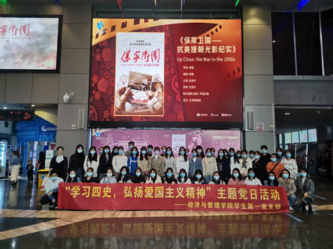 影片首次披露抗美援朝真实影像,每一盒胶片都是一段真实过往,每一枪一炮都是一个真实生命。志愿军一心想要保家卫国的精神,共和国不会忘记,人民不会忘记。纪录片的震撼深深触动了员工党员们的心。本次活动除了集体观影外,还穿插了横幅签名弘扬爱国主义精神的活动,为即将到来的党成立一百周年纪念日写下寄语的活动,以及“党史知识谁知道”的抢答小游戏。游戏结束,全体党员同志合影留念,而后清点人数集体返校。