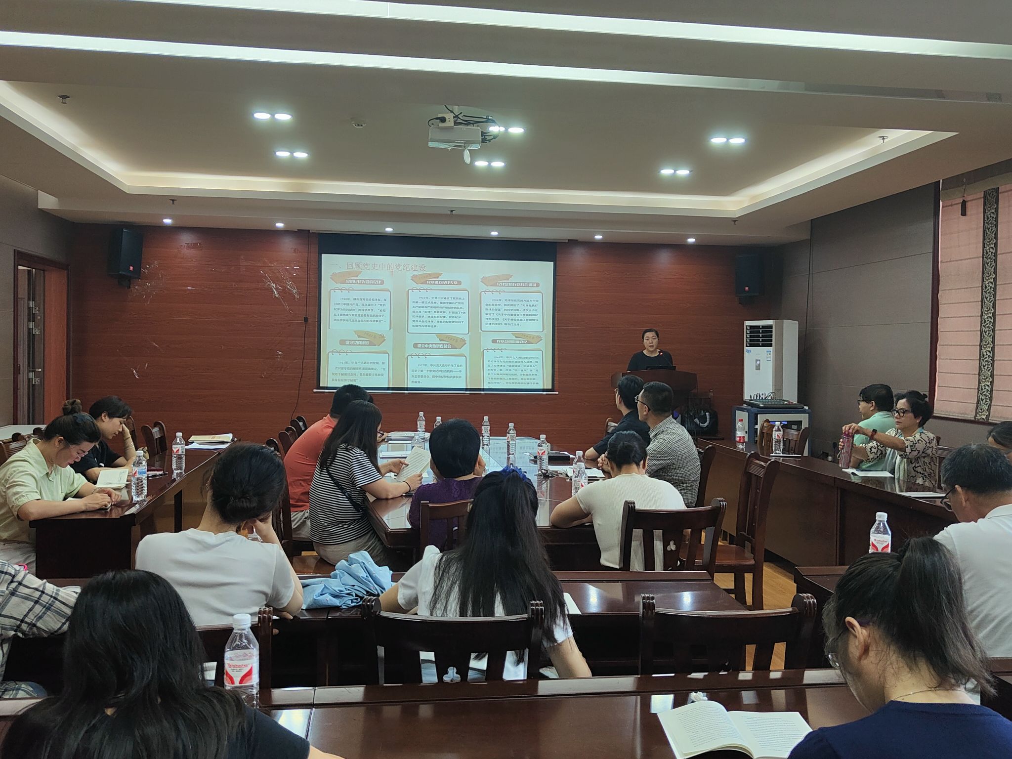 何玲玲副经理以“党史上的纪律教育”为题,通过回顾党史中的纪律建设,辅以史上党内严明纪律教育的典型案例展开讲述。她强调,党员教师通过了解党史上的纪律要求,增强自身的纪律意识,把纪律规矩转化为政治自觉、思想自觉、行动自觉,营造风清气正的教育环境,为员工树立良好的师德师风榜样。
