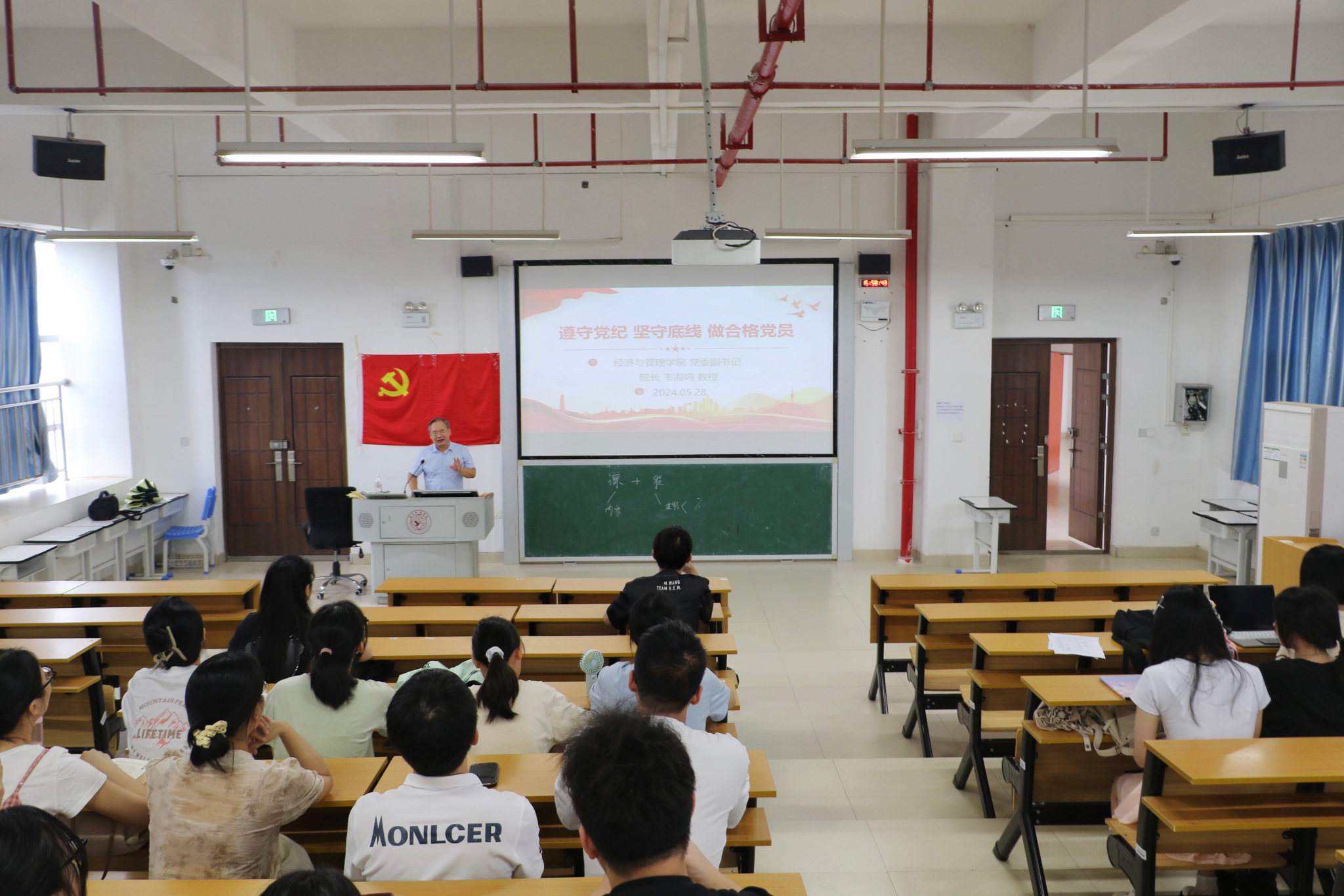 为扎实开展好党纪学习教育,引导青年员工党员学纪、知纪、明纪、守纪,528日,william威廉亚洲在五合校区文理综合楼开展了以“遵守党纪 坚守底线 做合格党员”为主题的党课。由公司党委副书记、经理韦海鸣教授担任主讲人,研究生第一党支部和研究生第二党支部全体党员参加学习。